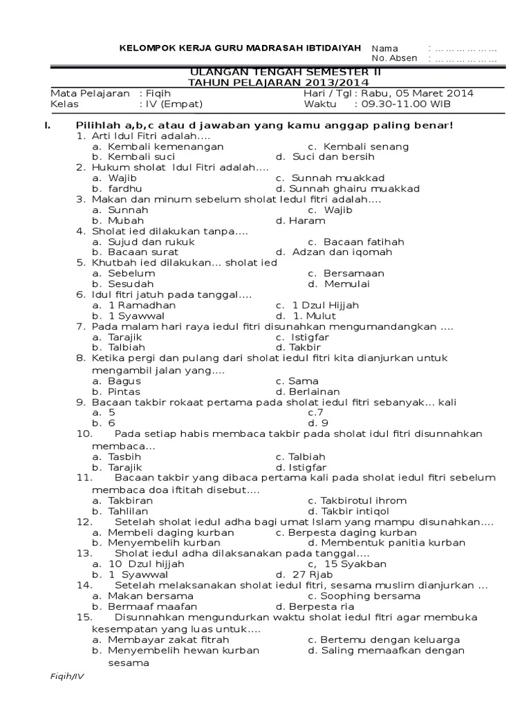 Soal Uts Fiqih Kelas 6 Semester 2 - Contoh Soal Uts Fiqih Kelas 2 Semester 1 Sd Mi Id Pengertian : Soal uts fikih kelas 6 semester 2 dan kunci jawaban soal fiqih kelas 6 tentang barang temuan, 22 01 2019 soal uts fikih kelas 6 semester 2 dan kunci jawaban terbaru untuk mengukur kemampuan siswa salah satunya dengan test tertulis yang dilakukan setelah menyelesaikan materi.